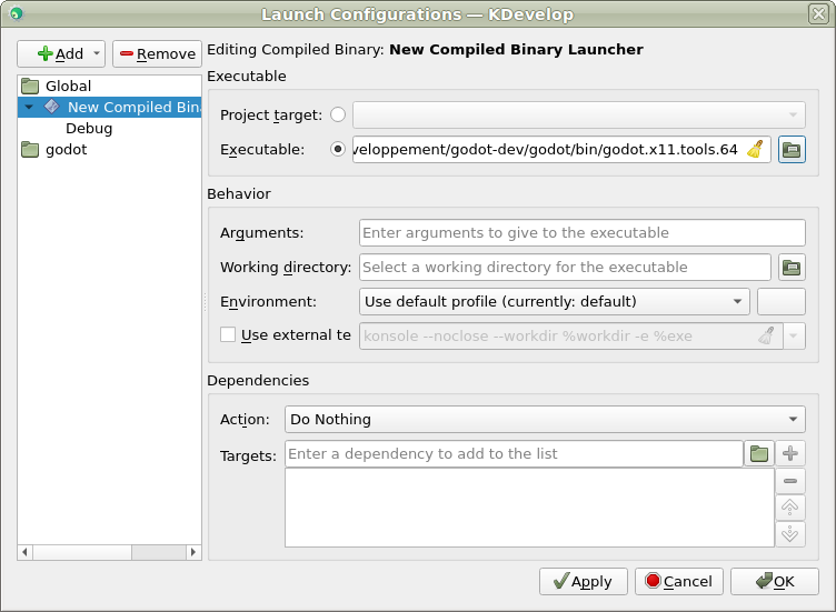 <Redot root directory>/binfolder. The name depends on your build configuration, e.g.Redot.linuxbsd.editor.dev.x86_64for 64-bit LinuxBSD platform withplatform=editoranddev_build=yes.